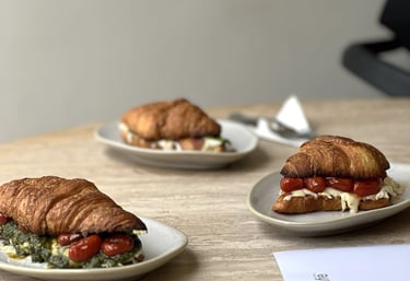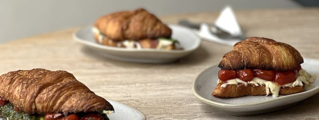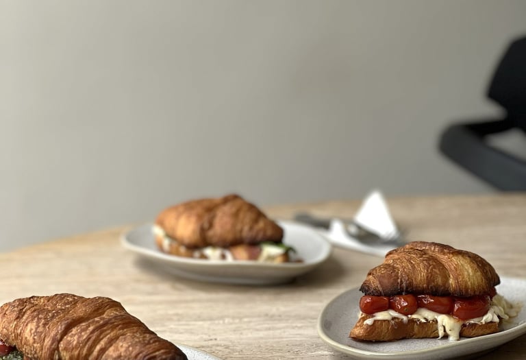 Croissant artesanal recheado com ingredientes frescos e de alta qualidade.